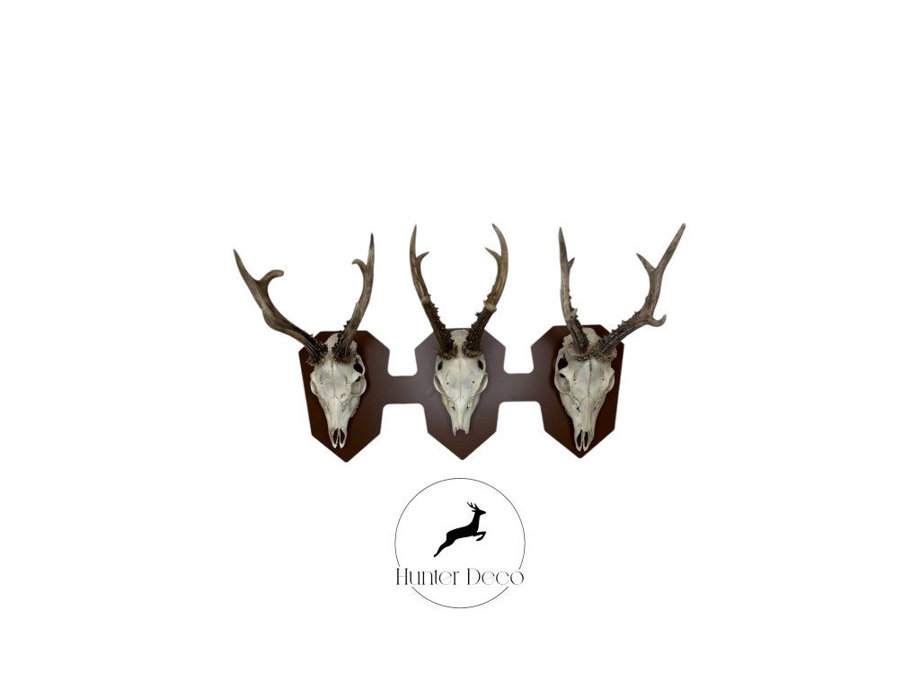 This horizontal triple mount allows you to display three trophies in a clean side-by-side layout, creating a strong visual impression.