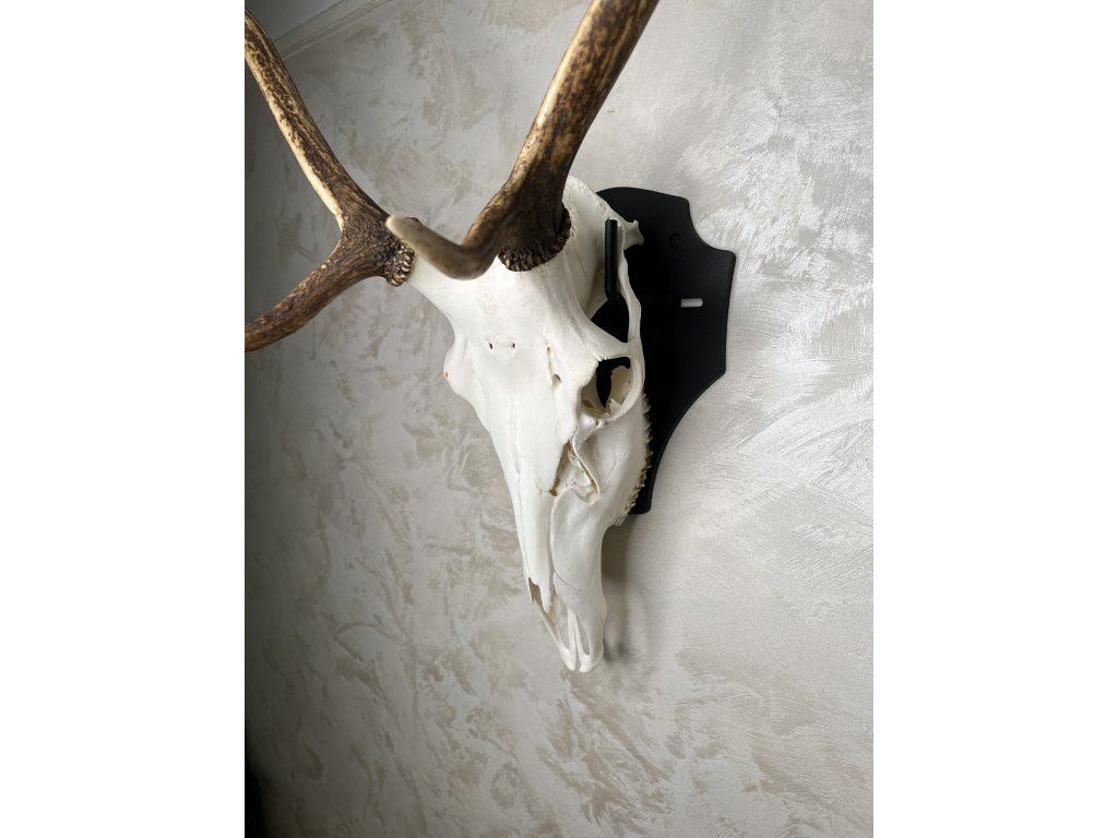 Robust steel wall mount designed specifically for deer trophies of all sizes. Adjustable range from 8.5–16 cm, load capacity up to 20 kg, and powder-coated finish. Easy installation with 3 mounting holes. Perfect for hunters and collectors.