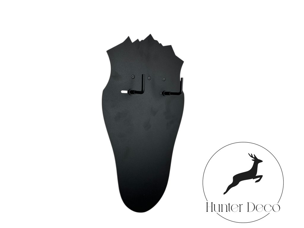 Nástěnný držák na jelení trofej je navržen pro bezpečné, stabilní a estetické vystavení i rozměrných jeleních trofejí. Moderní konstrukce doplněná o dekorativní siluetu hor vytváří výrazný vizuální prvek, který podtrhne charakter trofeje i celého interiéru.